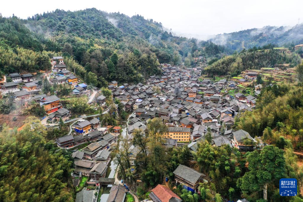 这是3月18日拍摄的贵州省榕江县栽麻镇大利侗寨(无人机照片)。