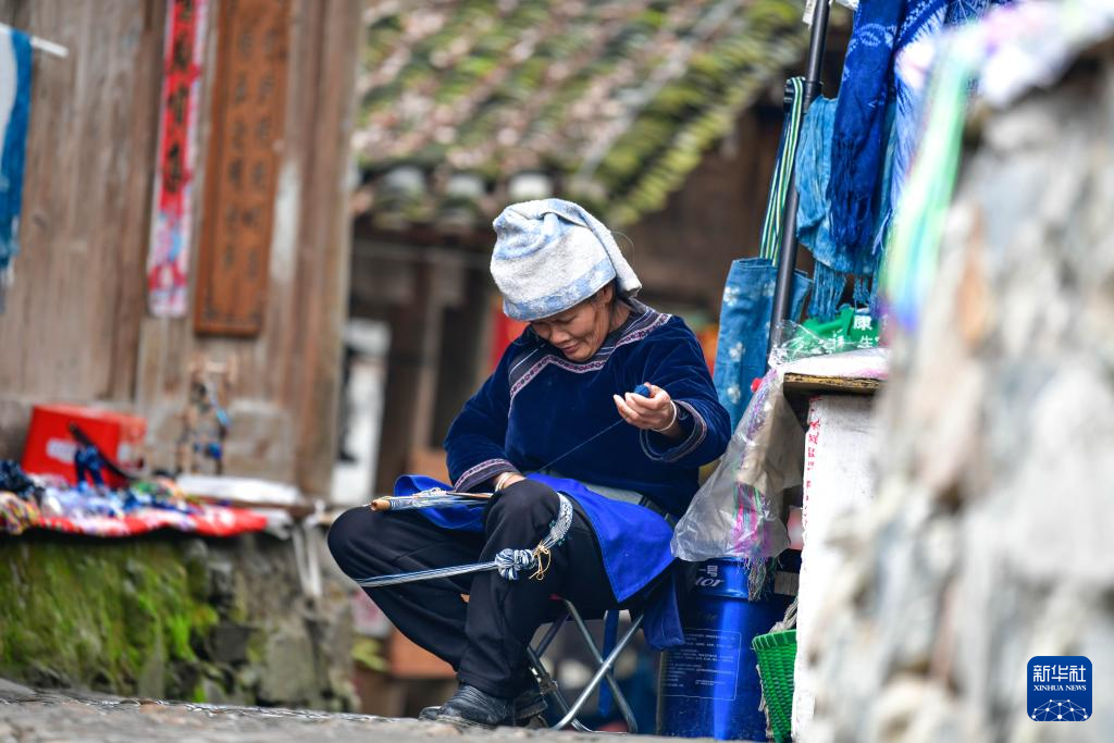 3月18日,贵州省榕江县栽麻镇大利侗寨的村民在刺绣。
