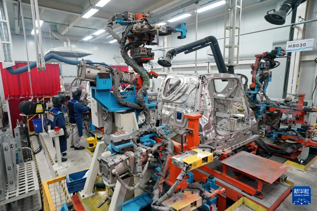 3月19日,奇瑞新能源汽车股份有限公司石家庄分公司的工人在车身车间内进行焊接作业。