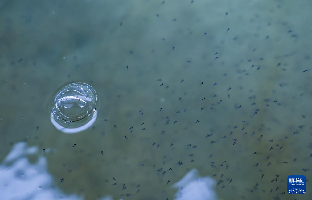 湖州市吴兴区东林镇保健村的湖旺水产基地孵化池内刚刚孵化出来的鱼苗(3月19日摄)。