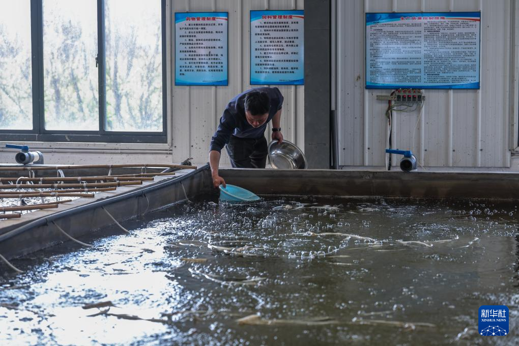 3月19日,在位于湖州市吴兴区东林镇保健村的湖旺水产基地恒温池塘内,工作人员查看产卵种鱼的生产情况。该基地约有400亩育苗大棚,每日能孵化鲈鱼、黄颡鱼、光唇鱼等各类鱼苗2000万尾。