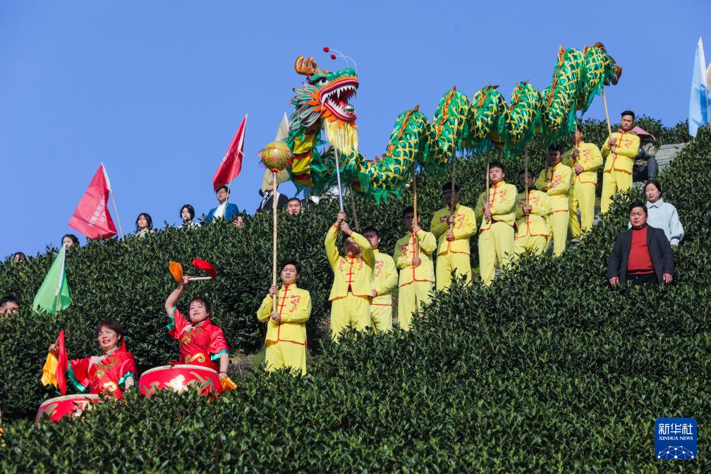 当日,浙江省杭州市富阳区富春街道拔山村举行“喊山祈茶”仪式,村民们在万亩茶园内敲起锣鼓,舞动“富春拔山茶龙”,呐喊着“茶发芽啦”,以此庆祝春茶开摘,祈福国泰民安、风调雨顺。