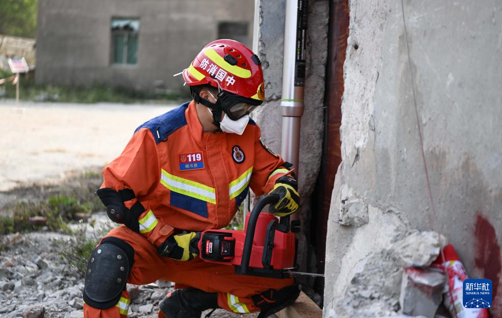 3月20日,消防员在进行建筑坍塌破拆救援演练。
