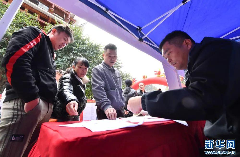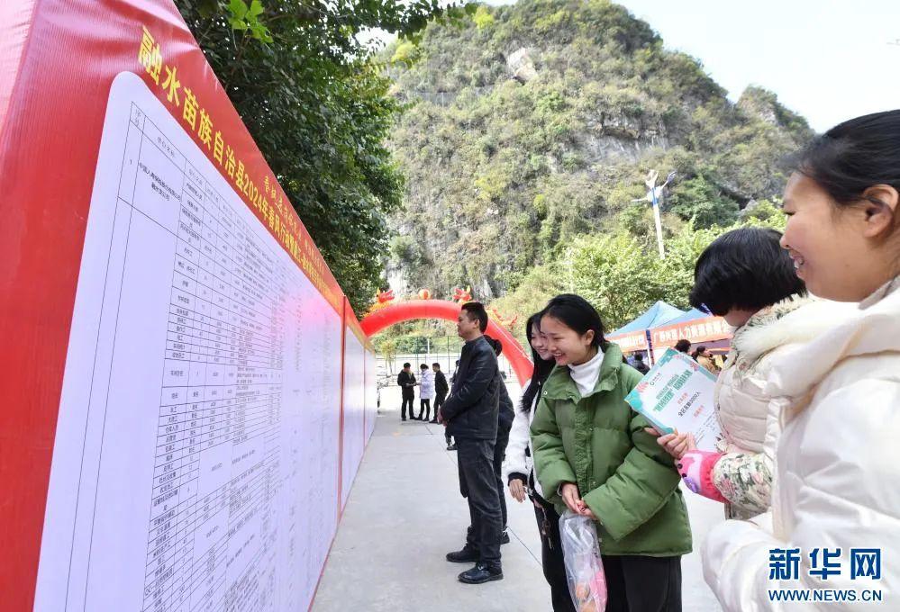 3月19日,在柳州市融水苗族自治县易地扶贫安置点苗家小镇,求职者浏览岗位需求。新华社记者 黄孝邦 摄