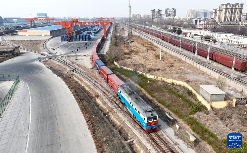 3月21日,驶往塞尔维亚的中欧班列从石家庄国际陆港驶出。