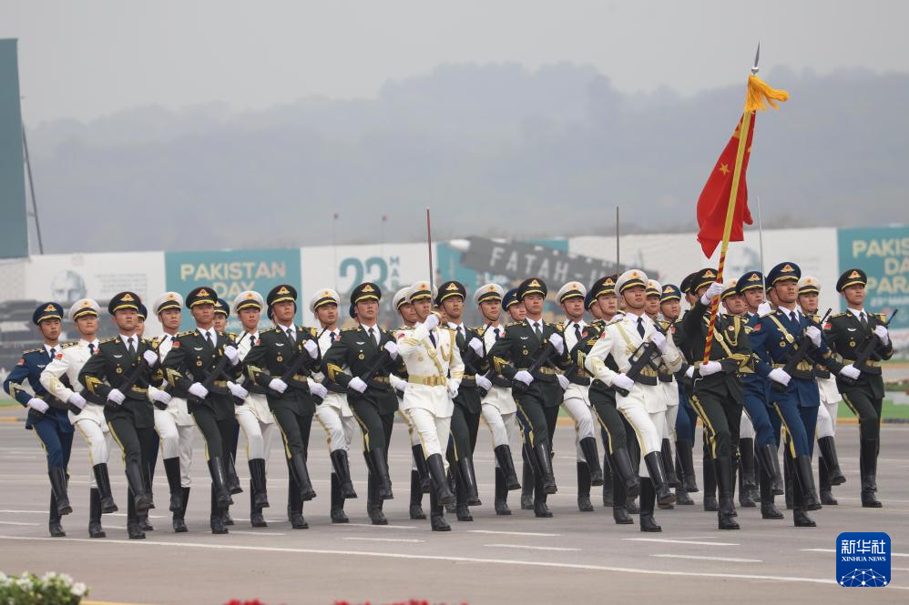 3月23日,中国人民解放军仪仗司礼大队方队在巴基斯坦首都伊斯兰堡参加阅兵式。