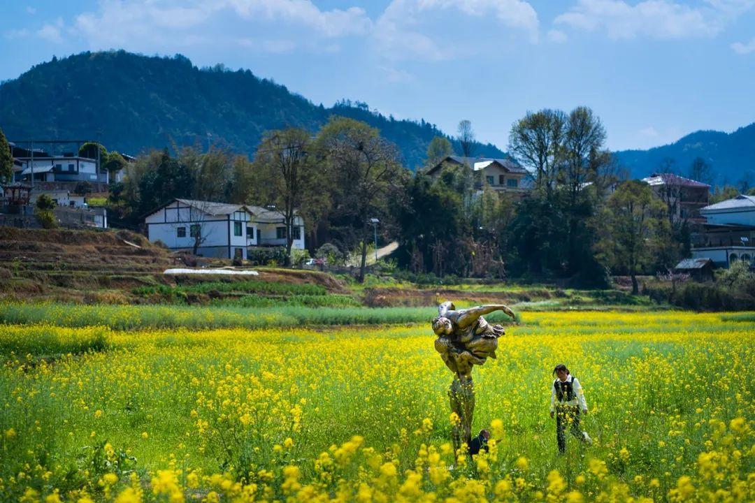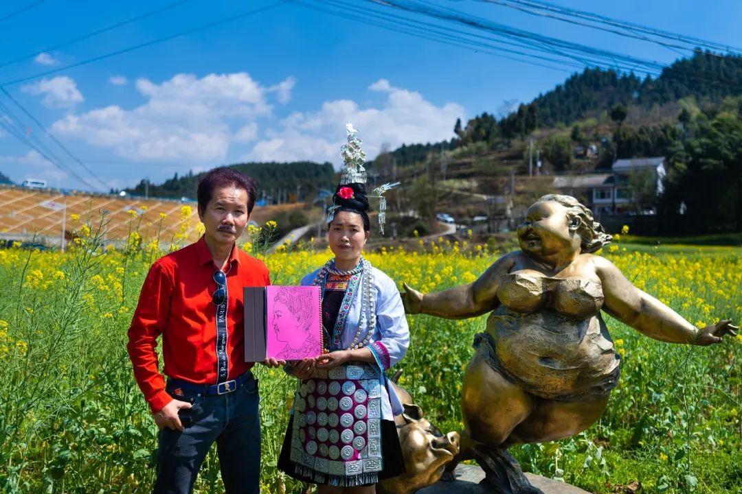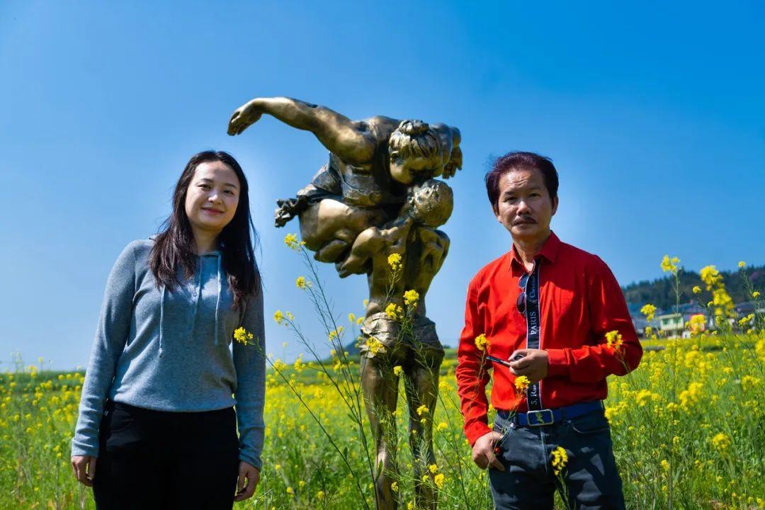 许鸿飞雕塑艺术百村展走进遵义,走进油菜花田