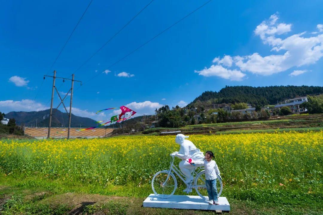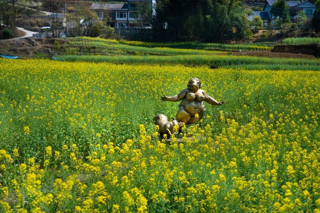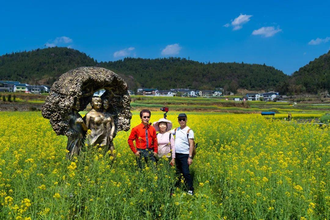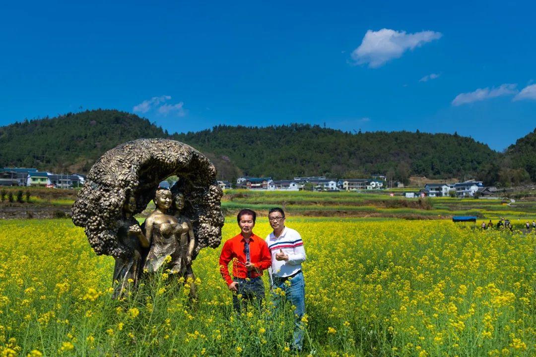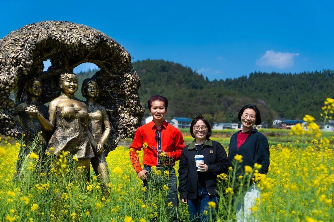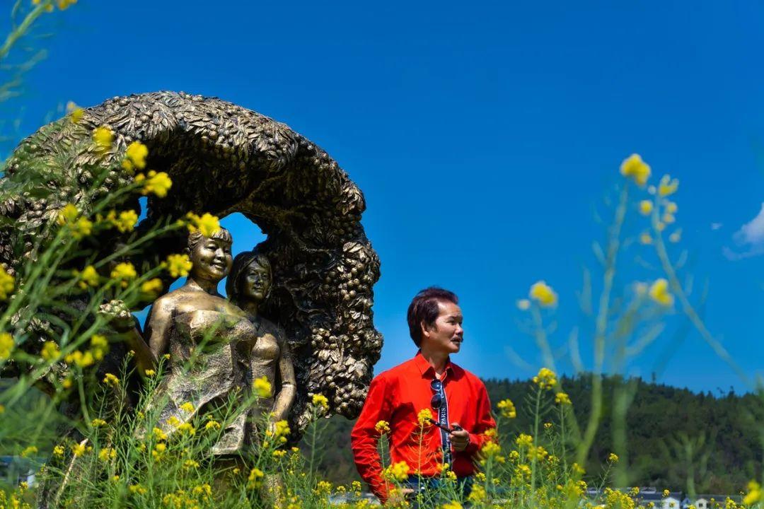 沿着雕塑线条的律动,许鸿飞的经典雕塑作品巧妙地与美丽乡村相融,动静结合,相映成趣,反映了新时代农村面貌,展现了人民对美好生活向往。当得知油菜花海里展出了雕塑作品,不少当地村民纷纷赶来参观,而前来观赏油菜花的游客,也收获了一场特殊的“偶遇”。大家兴致勃勃地与作品合影,留下珍贵的纪念。