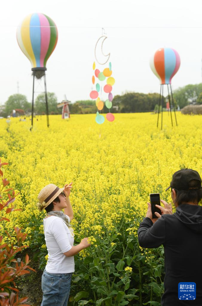 近日,浙江省湖州市吴兴区八里店镇移沿山生态景区大片油菜花开放,吸引游客赏花游玩。近年来,当地以花海为基础,推进赏花游与农业、文创、商贸等产业融合发展,助力乡村振兴。