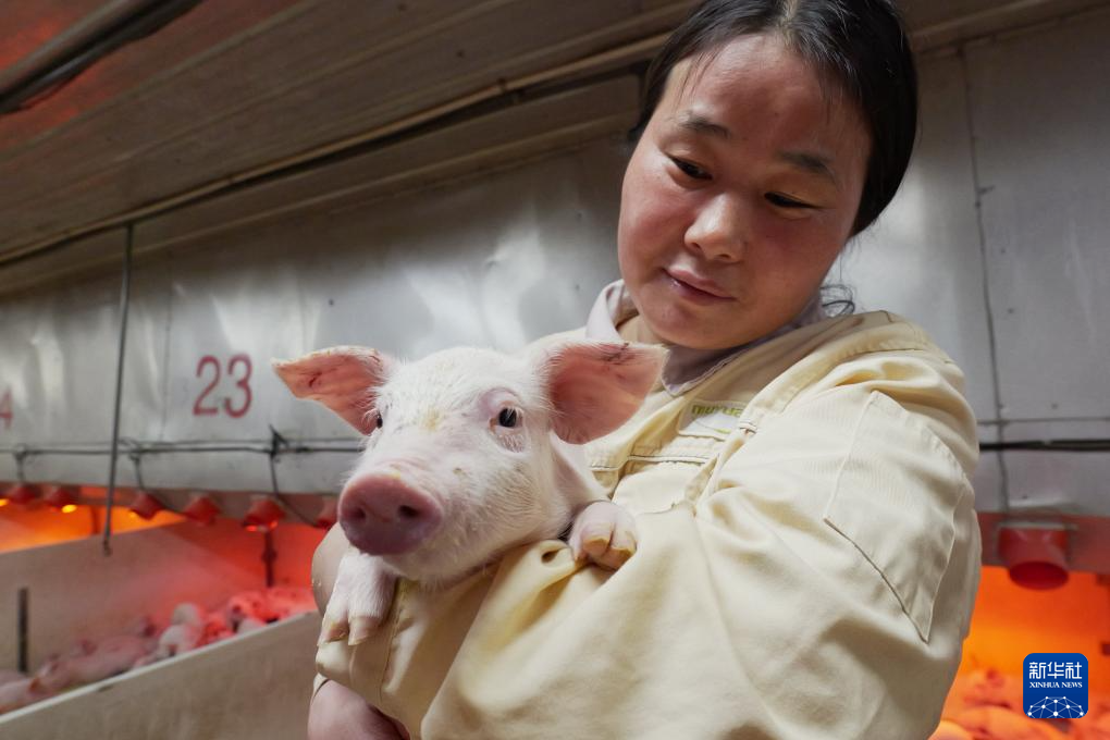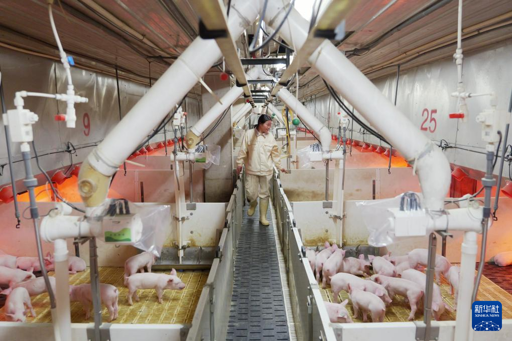 工作人员在内乡牧原肉食产业综合体仔猪段查看仔猪的生长情况(3月21日摄)。位于河南省南阳市的牧原集团近年来持续在养殖智能化等方面“下功夫”,在传统养殖业推出空气过滤猪舍等“黑科技”,用技术创新打开养殖业新空间。