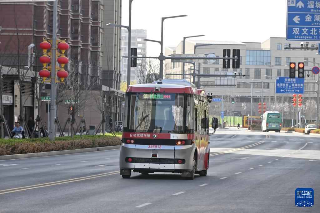 3月29日,智能网联巴士在雄安新区容东片区道路上行驶。