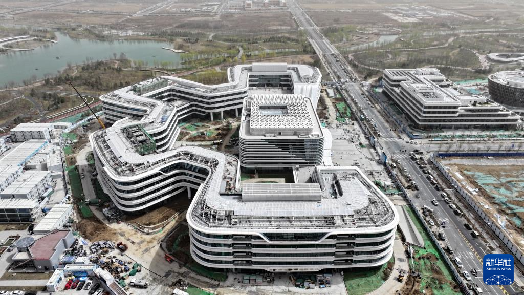 这是位于雄安新区启动区内的中国卫星网络集团有限公司总部大楼建设现场(3月28日摄,无人机照片)。