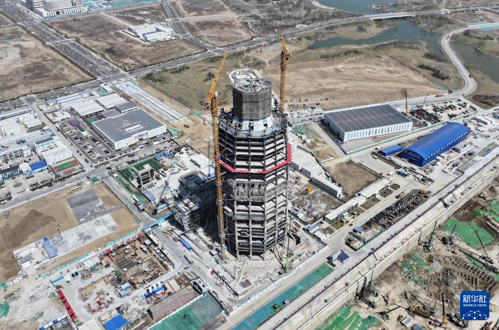 这是位于雄安新区启动区内的中国中化大厦建设现场(3月29日摄,无人机照片)。