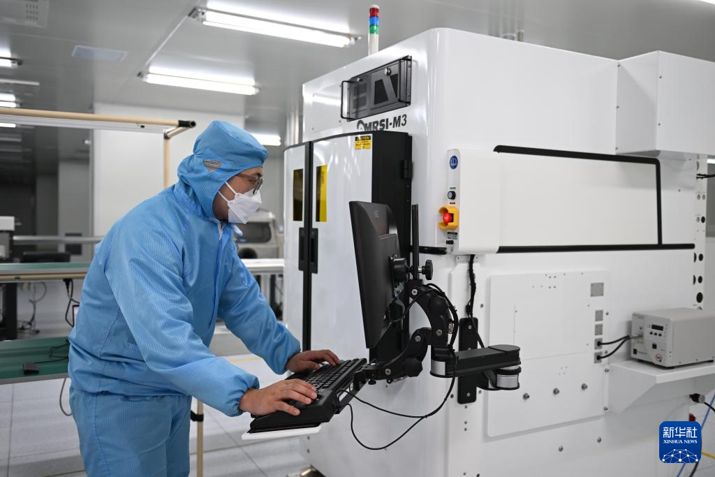 3月28日,在雄安科创中心中试基地,芯联新(河北雄安)科技有限公司工作人员在调试芯片生产设备。