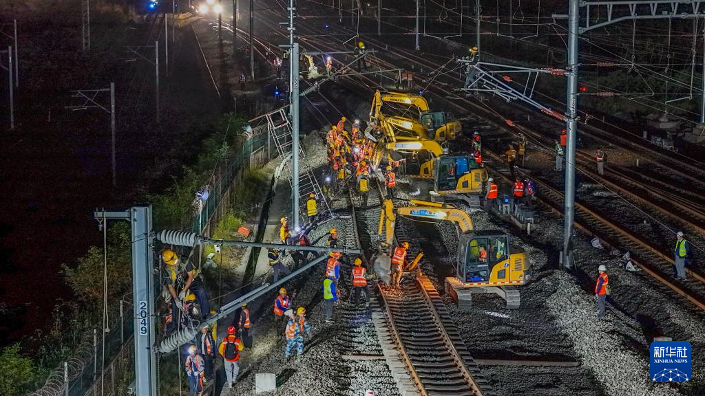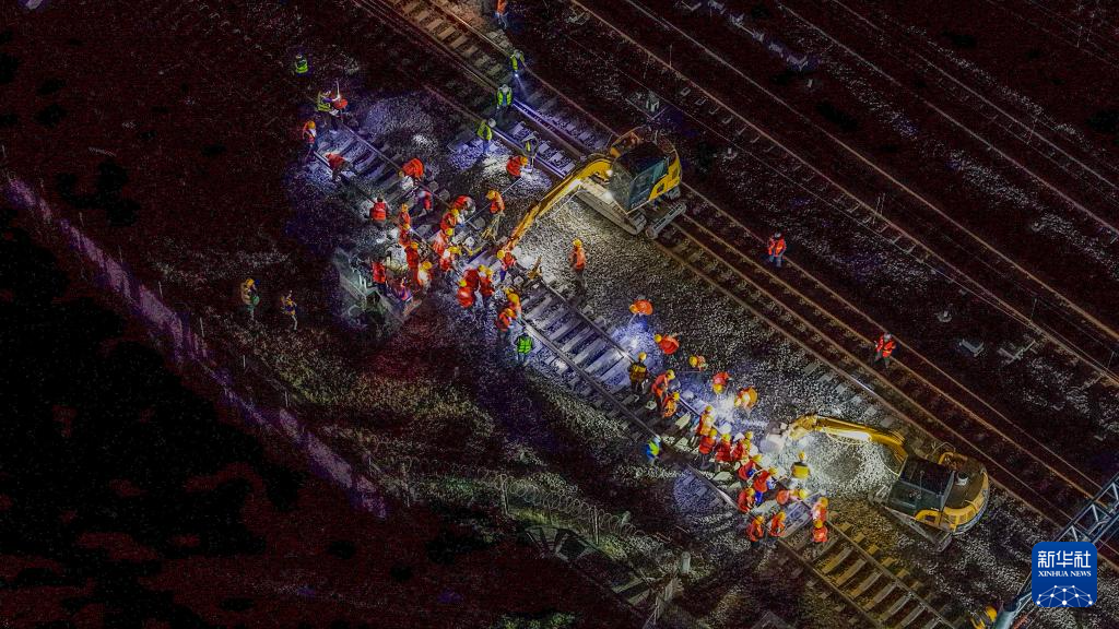 3月31日凌晨,施工人员在改造现场施工(无人机照片)。