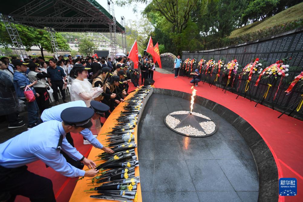 当日,“缅怀先烈志,铭记英雄魂——2024清明祭英烈缅怀纪念活动”在福州三山人文纪念园英雄广场举行。人们用诗歌朗诵、火炬传递、敬献鲜花等方式缅怀先烈。