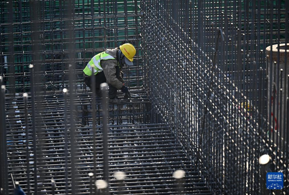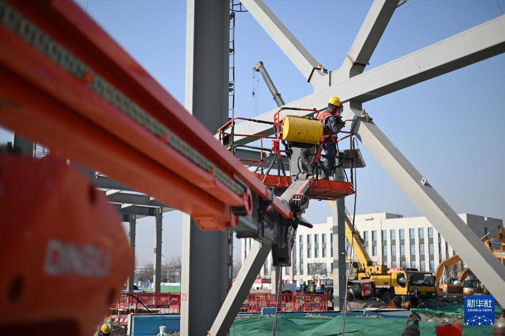 3月31日,工人在空客天津第二条总装线项目建设现场施工作业。