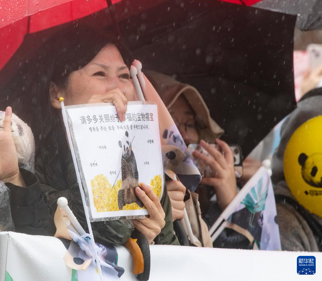 旅韩大熊猫“福宝”3日离开位于韩国京畿道龙仁市的爱宝乐园,踏上回国旅程。许多韩国民众冒雨来到爱宝乐园,为“福宝”送行。