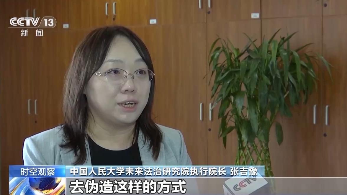 中国人民大学未来法治研究院执行院长 张吉豫:特别在民法典制作的编纂的过程之中,就已经非常明确地考虑到了,当时就已经产生的像深度合成这样的一些技术可能带来的风险。任何人都不能够用信息技术来去伪造这样的方式去侵害他人的肖像权,而且也特别关注到对于声音也可以去进行合成,所以在民法典里面也规定了那声音相关的权利也是参照着肖像权一起来去进行保护的。