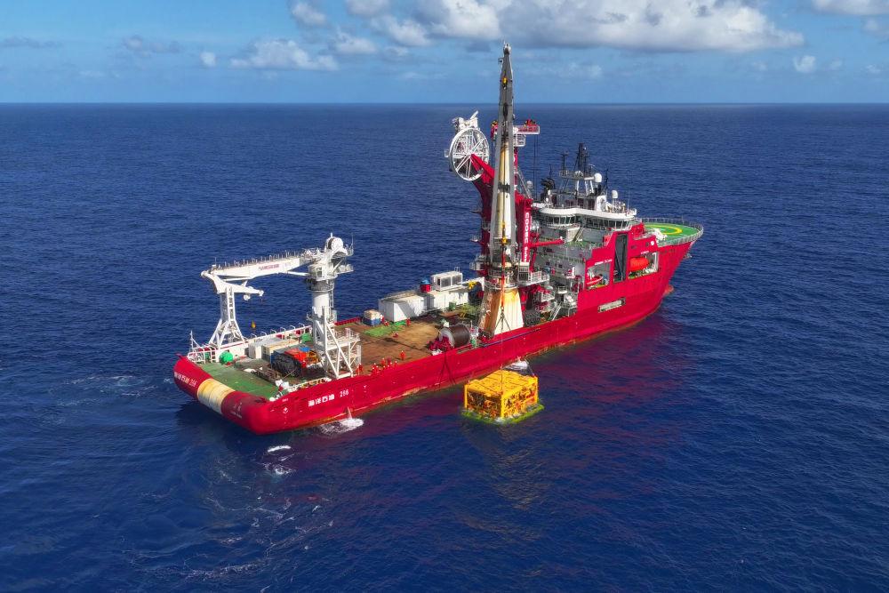 深水水下中心管汇被作业船舶吊起。(中国海油供图)