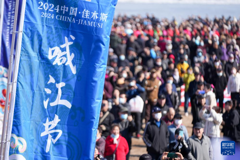 当日,2024中国·佳木斯“喊江节”在黑龙江省佳木斯市的松花江畔开幕。