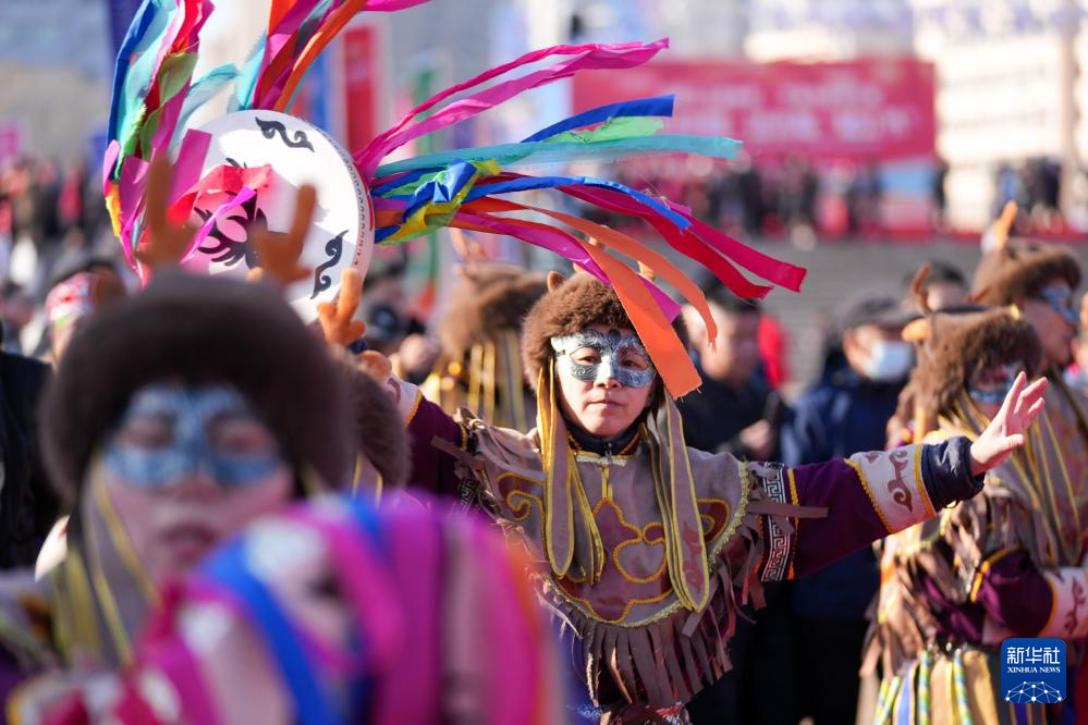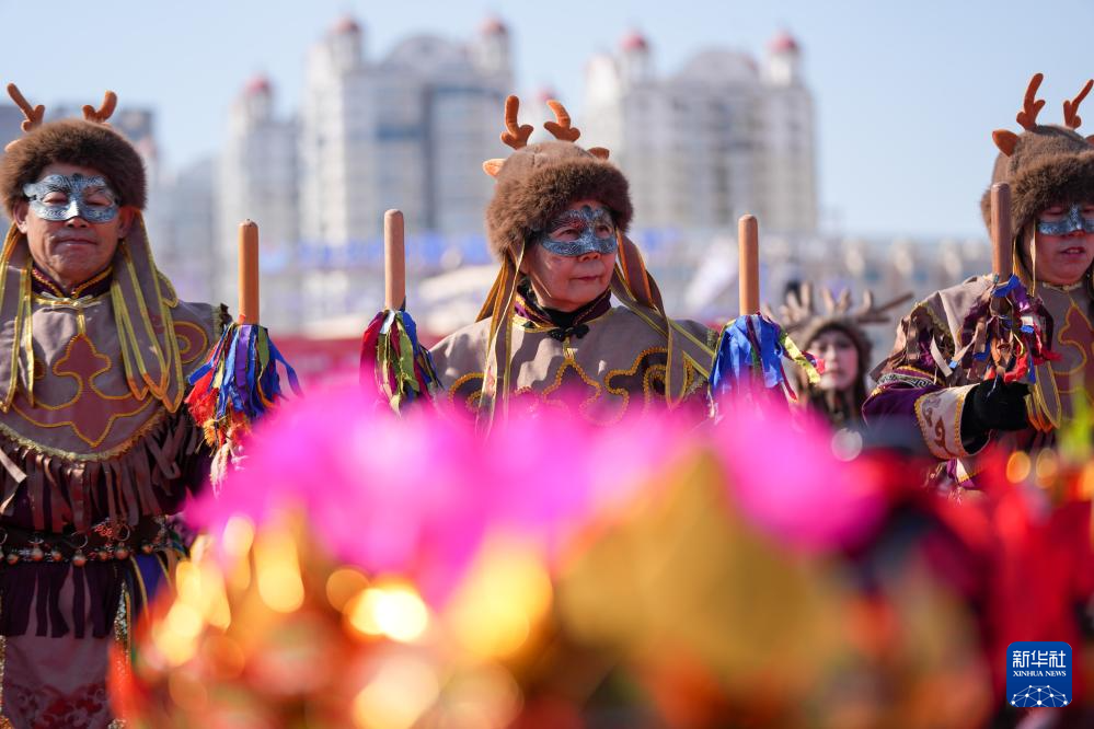 这是4月9日在“喊江节”现场拍摄的赫哲族开江祈福仪式。