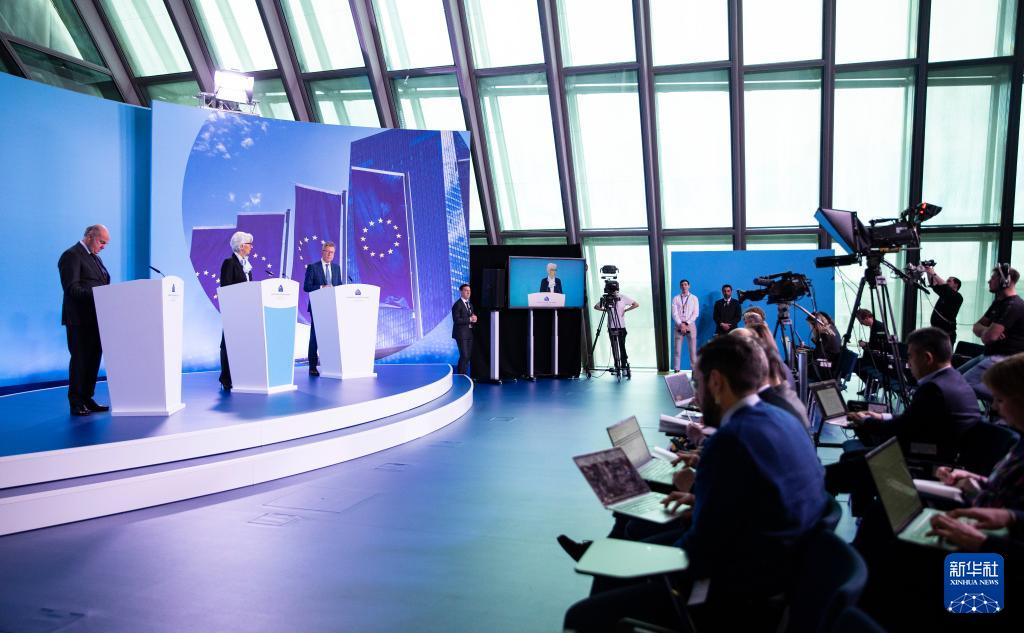 4月11日,欧洲中央银行行长拉加德在德国法兰克福欧洲中央银行总部出席新闻发布会。