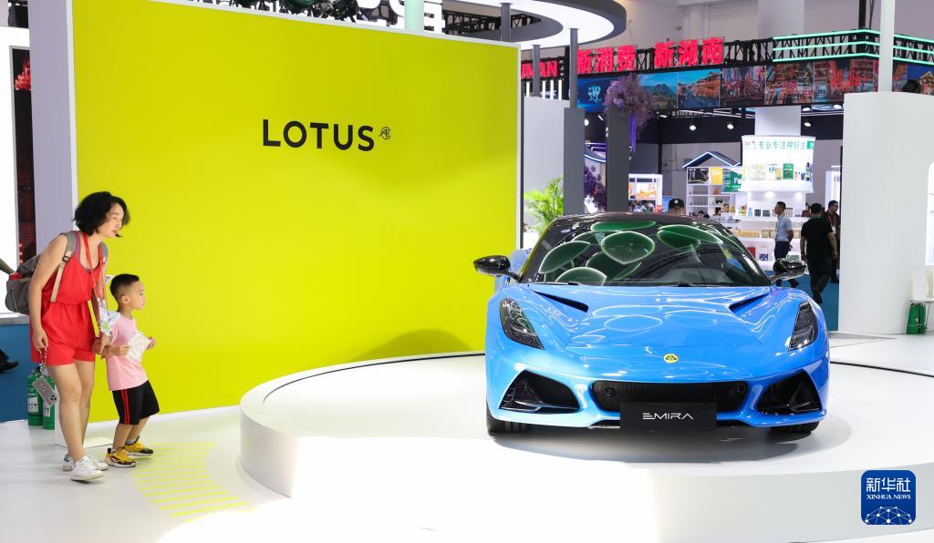 4月13日,观众在消博会现场参观展车。