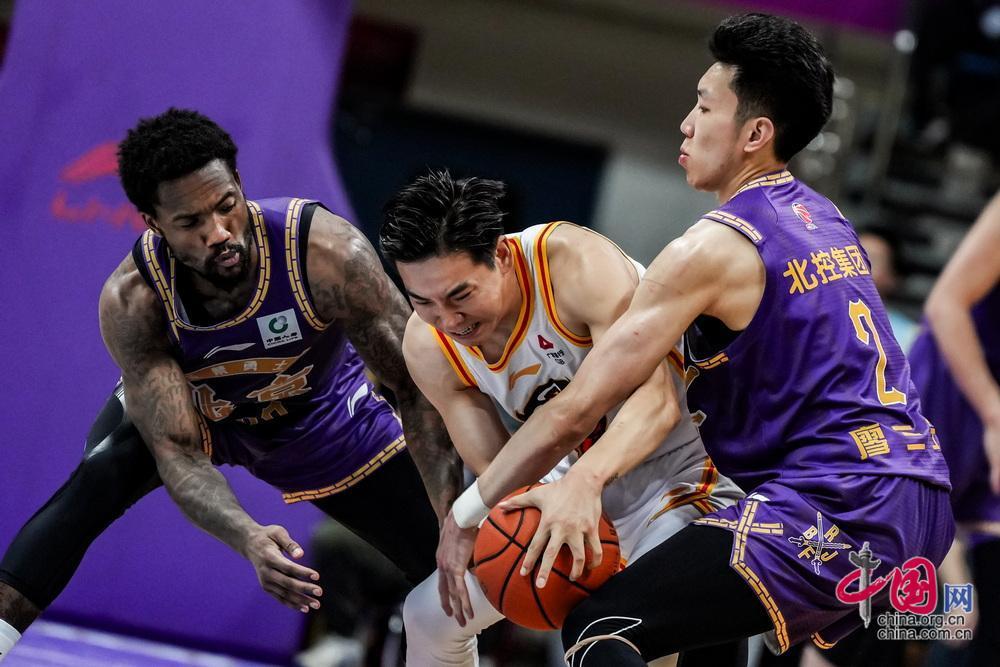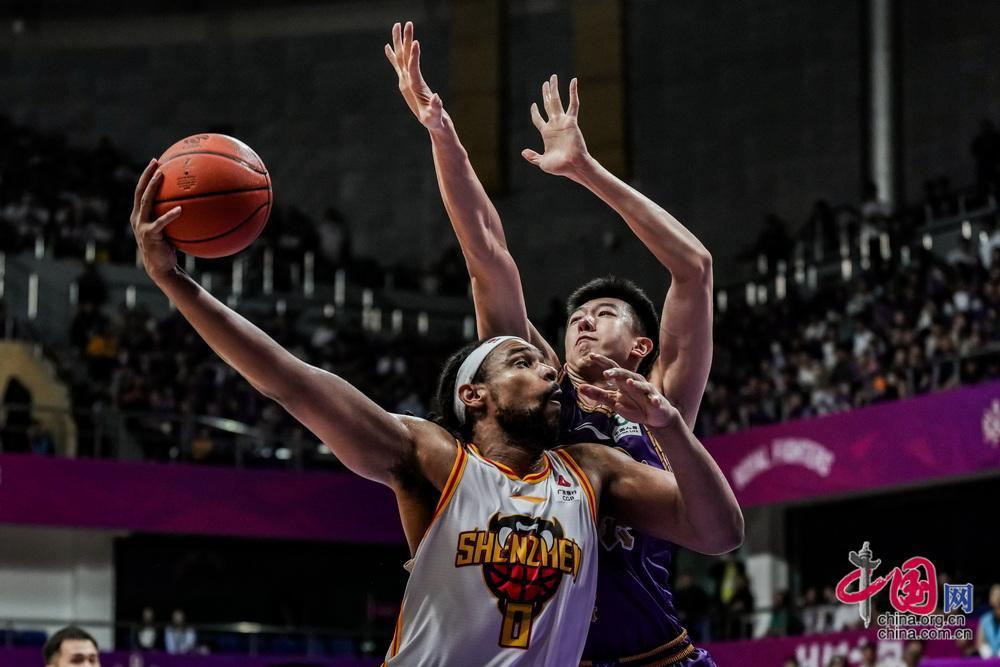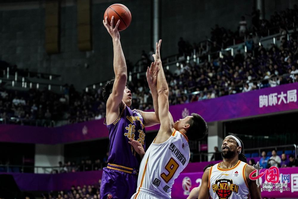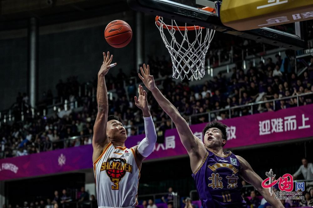 4月13日晚,CBA季后赛12进8的第二回合比赛中,北京北控队在主场以99比94战胜深圳队。中国网记者 郑亮摄