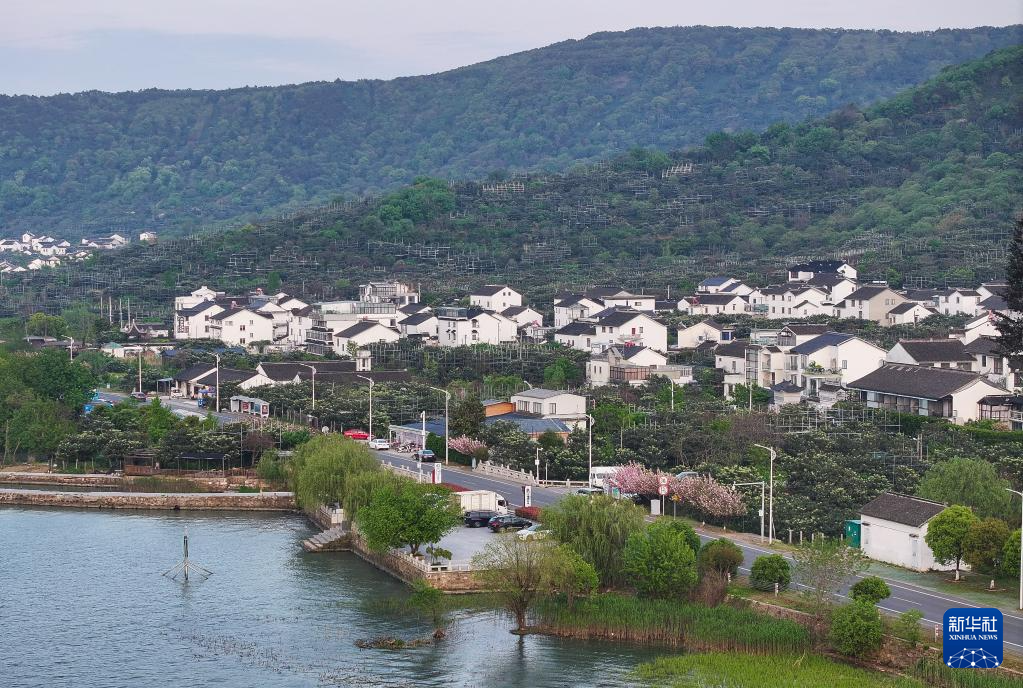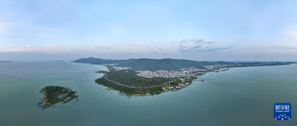 4月11日拍摄的苏州市吴中区金庭镇太湖景色(无人机照片)。苏州市吴中区坐拥五分之三太湖水域,五分之二太湖岸线,五分之四太湖峰峦。近年来,吴中区统筹做好水安全、水生态、水资源、水文化四篇“水文章”及太湖岛屿、山体保护利用,成就了山光水影一色天、渺渺湖岛点点帆的万顷太湖之美。通过大力发展乡村旅游,持续提升碧螺春茶、枇杷、杨梅等特色农产品知名度,不断书写生态富民、绿色发展的新篇章。