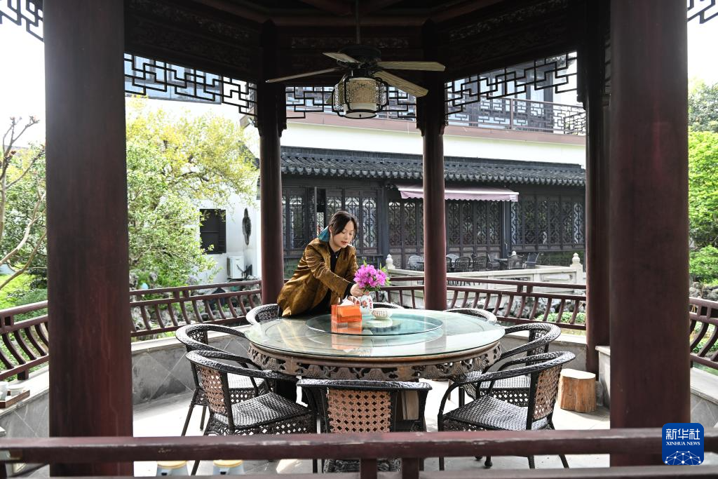 4月11日,苏州市吴中区东山镇太湖畔的仁德山庄民宿主人陈婷在家中忙碌。陈婷2018年辞去苏州市区银行工作,回乡利用自家院落经营民宿。美丽的太湖景色、园林式的建筑风格,加上政策的支持,让陈婷民宿事业越做越好。