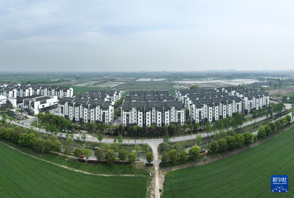 在浙江湖州义皋村拍摄的安置上岸渔民的义皋新村(无人机照片,4月11日摄)。