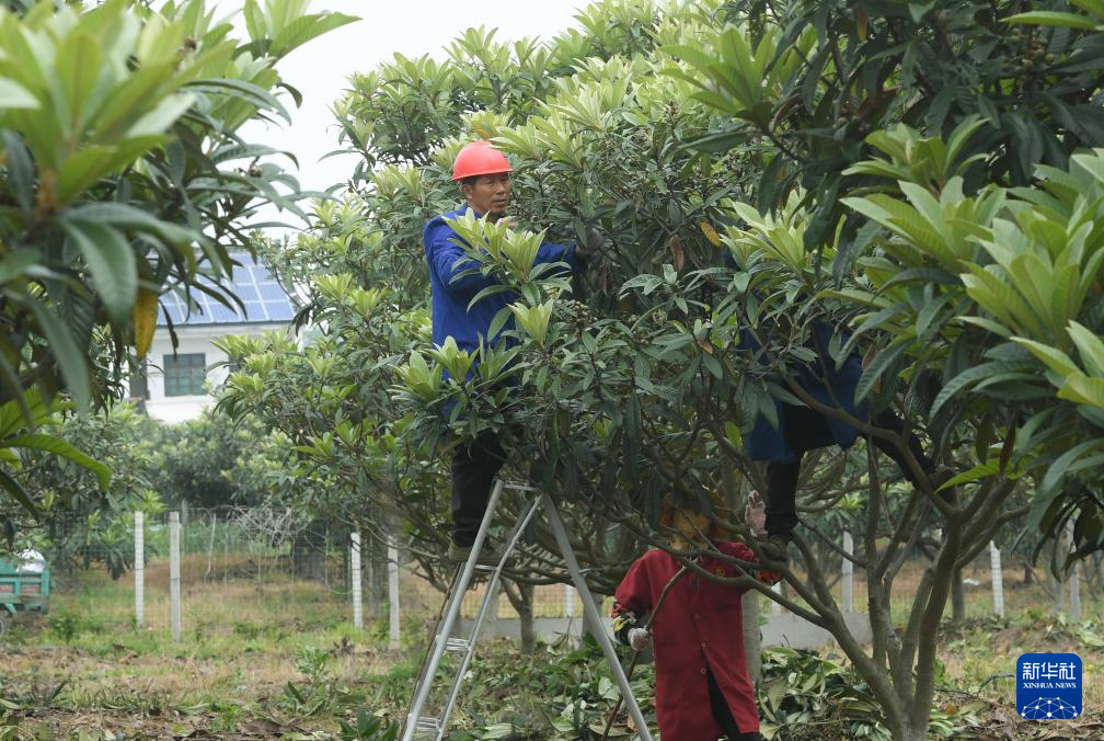 4月11日,浙江湖州许溇村村民给白玉枇杷疏果。村里共引进种植了700亩白玉枇杷,可使村民每户平均增收2万元。许溇村近年来通过发展枇杷种植和小龙虾养殖打响水乡游品牌,为村民增收。