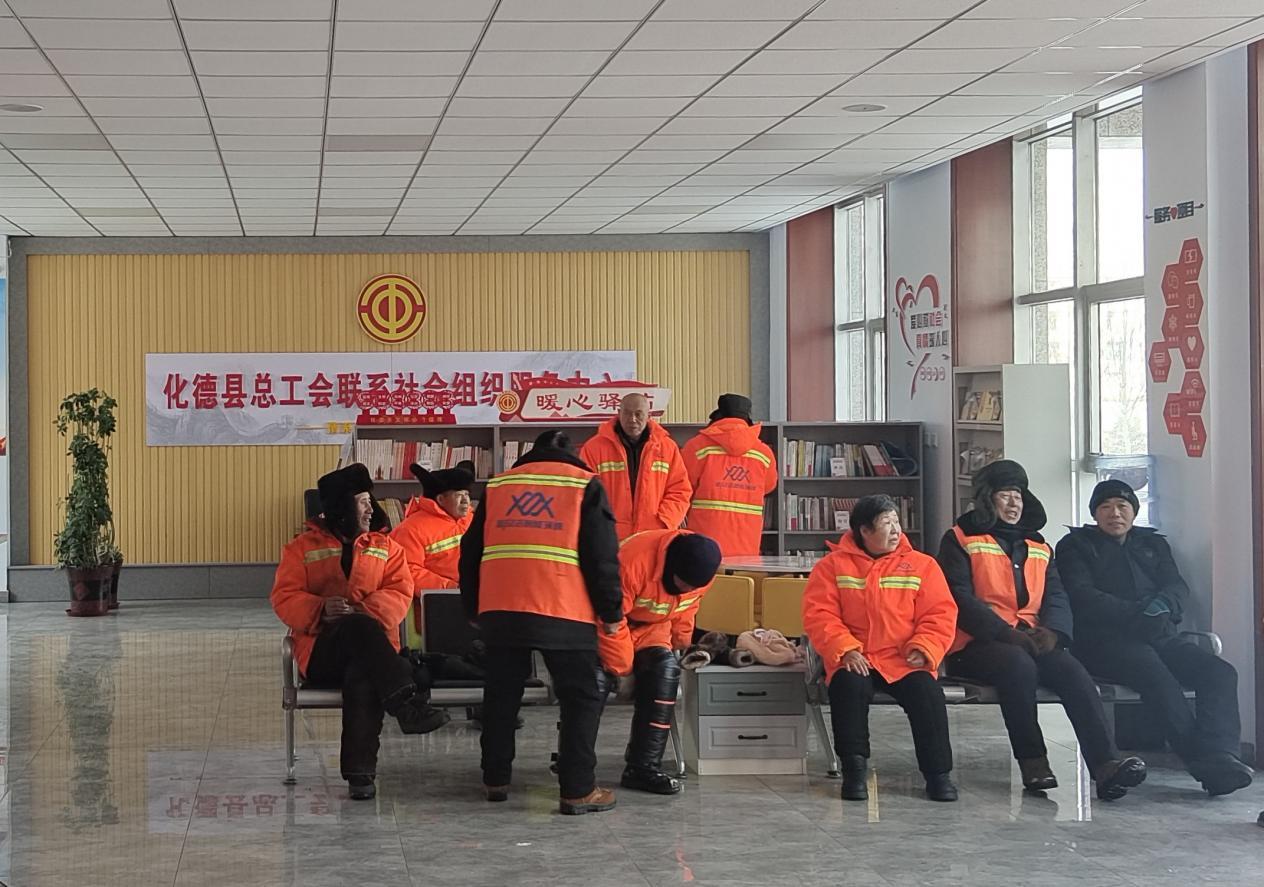 (化德县总工会和惠民社区“结对联系”共驻共建打造“暖心驿站” ,为环卫工人提供休息场所)