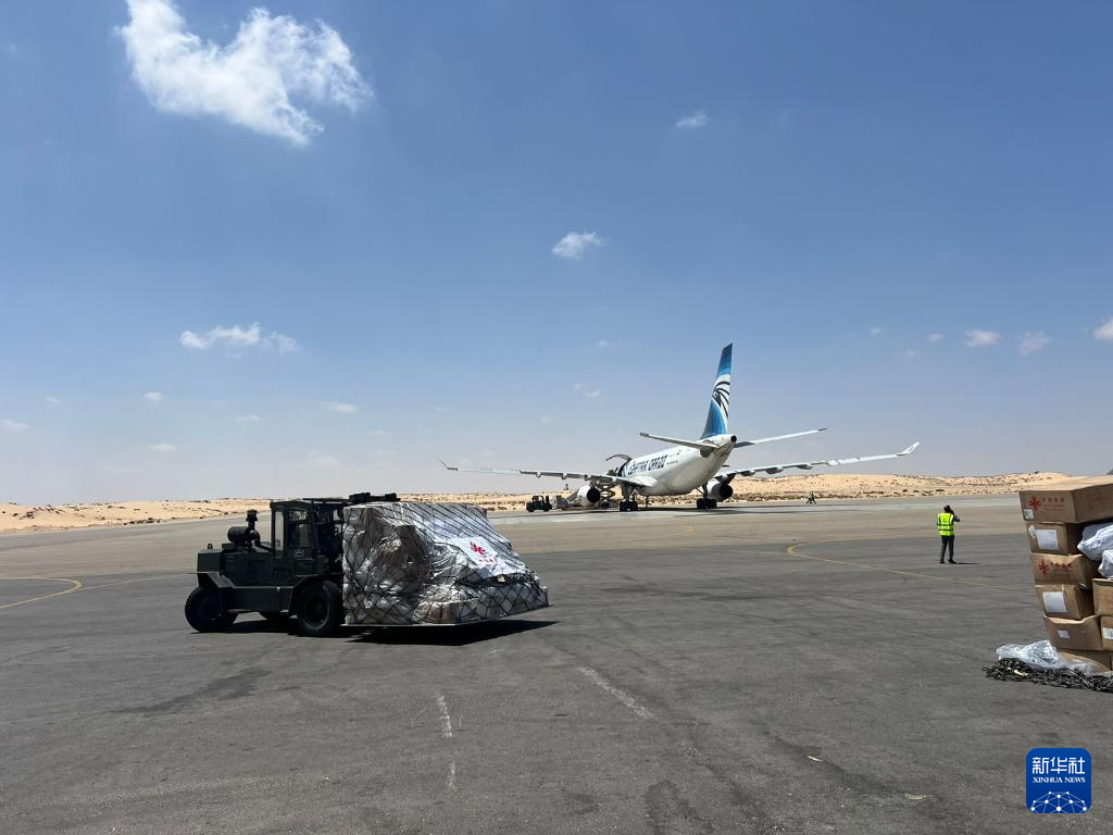 当日,中国新援助巴勒斯坦的一批物资运抵埃及阿里什机场,并将通过拉法口岸运往加沙地带。