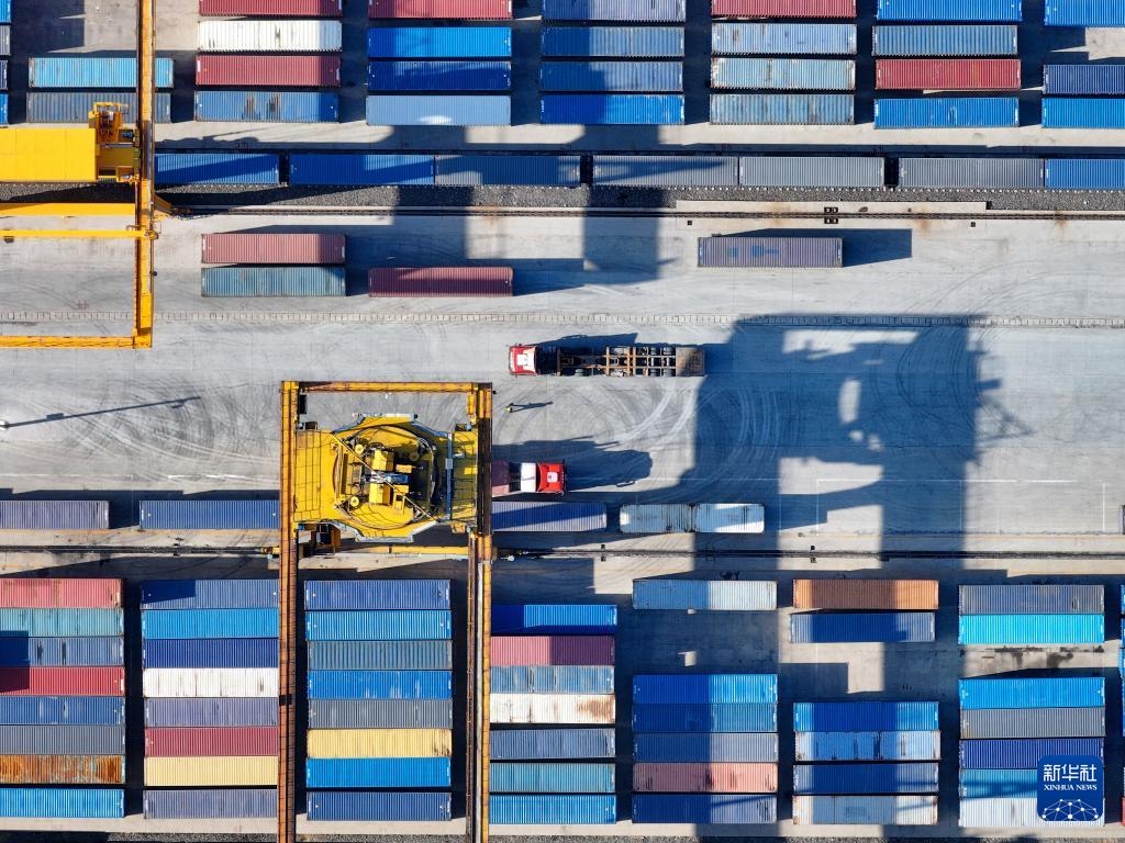 这是4月18日拍摄的霍尔果斯铁路口岸换装场(无人机照片)。