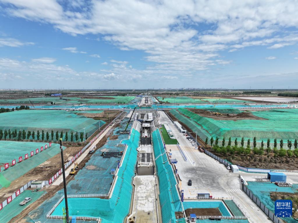 这是由中铁四局承建的雄安新区起步区NA12市政道路和综合管廊(二期)项目建设现场(4月23日摄,无人机照片)。