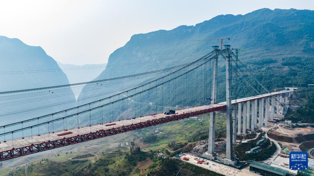 牂牁江大桥位于贵州省晴隆县和普安县交界处,大桥全长1849米,主跨1080米,桥面至江面最高距离380米。