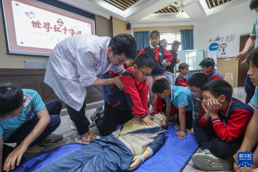 当日,在世界红十字日到来之际,浙江省湖州市吴兴区东林镇应急管理服务中心联合卫生院开展应急救护知识进校园活动,在下辖各中小学开展应急救护知识普及和演练,进一步提高学生紧急避险意识和应急救护能力。
