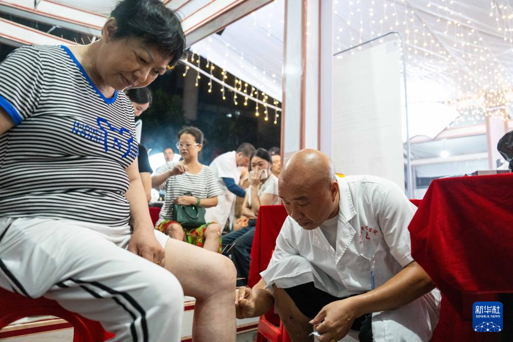 近日,湖南省常宁市卫健局举办“中医夜市”活动,医护人员变身“夜市摊主”,现场展示针灸、推拿、刮痧、耳贴、艾灸等传统技艺,免费为群众提供健康咨询和诊疗服务,吸引了众多市民前来“探店”,为当地夜生活增添独特的“杏林药香”,也为中医药文化的传承与创新发展注入新的活力。据了解,“中医夜市”活动将持续至8月18日,每天20:00至22:30在常宁市南门湖广场向市民开放。