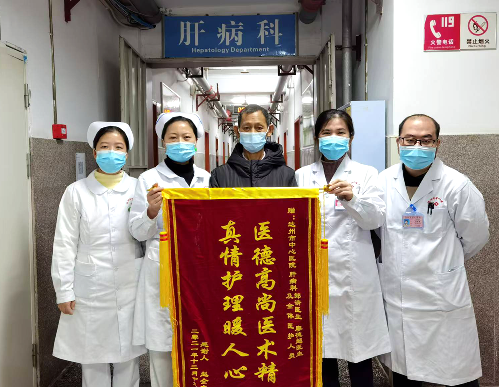 在郎清医生简陋的办公室里,挂满墙的锦旗格外抢眼。其中有一面是患者赵某某全家赠送的。当时赵某某的病情比较严重,已是肝硬化晚期,还发生了肝衰竭,同时伴有肝腹水、消化道出血。郎清医生前前后后为他做了3次人工肝透析,黄疸最高时高达800umol/l。而正常人的黄疸才17umol/l,郎清医生说她从来以来没见过这么高的黄疸。幸运的是,患者老婆坚持无论如何也不放弃,并且全方位配合开展治疗。在郎清医生和团队不懈努力下,经过近三个月的治疗,患者奇迹般的活了下来。郎清说,其实像他这种病,到了晚期生存率基本为零,这个患者竟然创造了生命的奇迹。所以作为一名医生,无论遇到什么样的情况,都要把病人的安危放在首位,既是“良医”的职责,更是“良医”的担当。