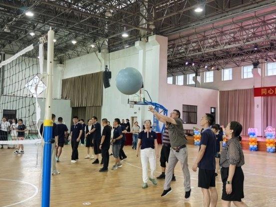 “小心后面,防住……”近日,一场别开生面的“趣”运会正在浙江省遂昌育才中学体育馆二楼火热进行中,这是该校为丰富教职工的课余文体生活,培养团队合作能力,调节紧张的工作学习气氛,组织开展庆祝第40个教师节趣味体育活动,让老师们提前感受既充实又快乐的节日氛围。