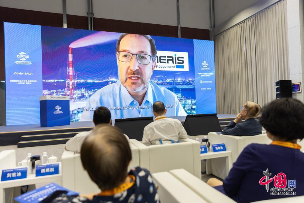 法国国家工业环境与风险研究院发展公司董事长欧立伟(Olivier SALVI)通过视频致辞。中国网记者 杨佳 摄影