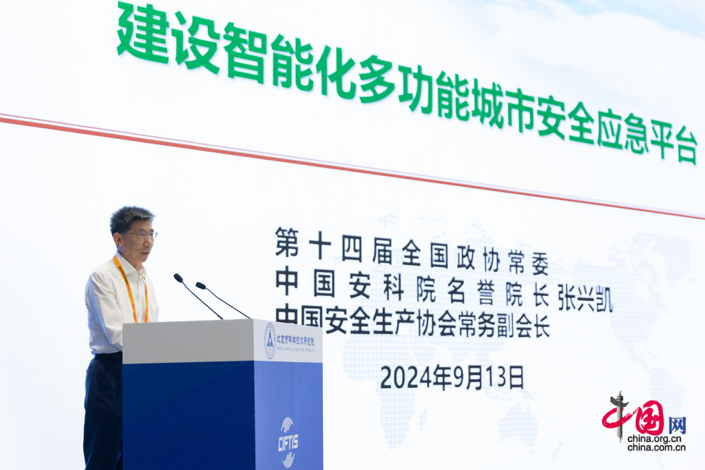 第十四届全国政协常委、中国安全生产科学研究院名誉院长张兴凯教授发表主旨演讲。中国网记者 杨佳 摄影