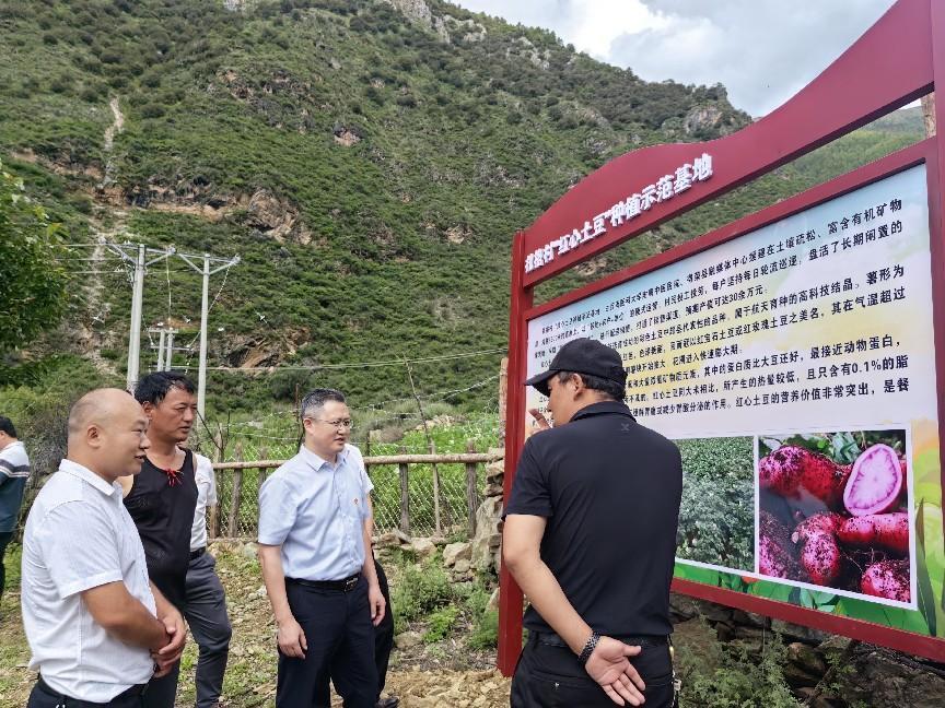 随后,在帮扶单位西南医科大学附属中医医院的经费支持下,扎格村投工投劳,每天每户投劳1人,重新开荒翻地、采购种子、安装围栏、打窝下种,就这样,扎格村红心土豆种植示范基地相关工作如火如荼地开展了起来。今年7月,医院党委书记李志带队实地调研了红心土豆基地的情况,并给予了相关意见和建议。