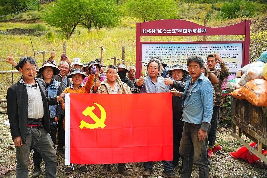 “这是我们村第一次完全由集体建立、管理的支柱产业,预计本月20日可以将土豆挖完。”该村驻村第一书记张富兵介绍,扎格村红心土豆示范基地今年一共种植了30亩红心土豆,预估产量可达6万斤,产值约20万元。