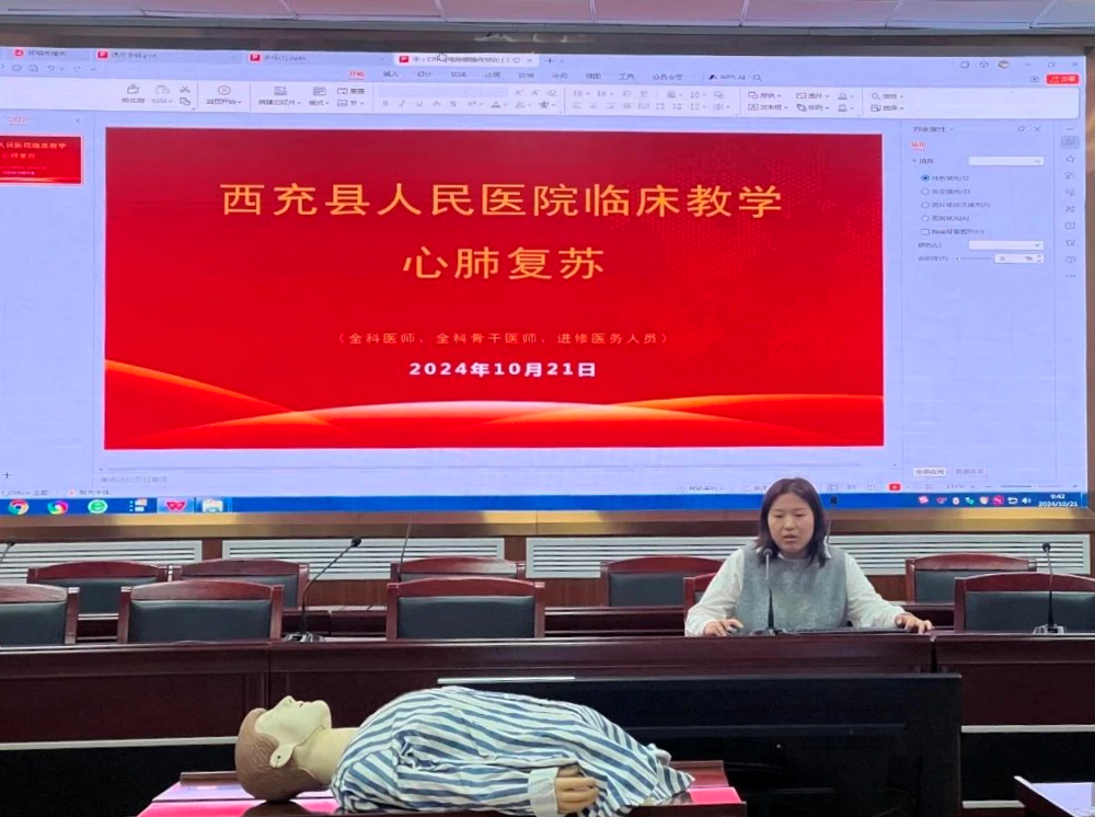 为提高临床进修生、全科及骨干培训生的心肺复苏急救技能水平,提升基层医务人员应对突发猝死事件的现场处置能力,进一步强化医院临床教学培训规范化管理,10月21日上午,南充市西充县人民医院科教科在第一学术厅组织开展了2024年心肺复苏急救技能教学培训会。全科(骨干)医师、进修生全员参加会议。