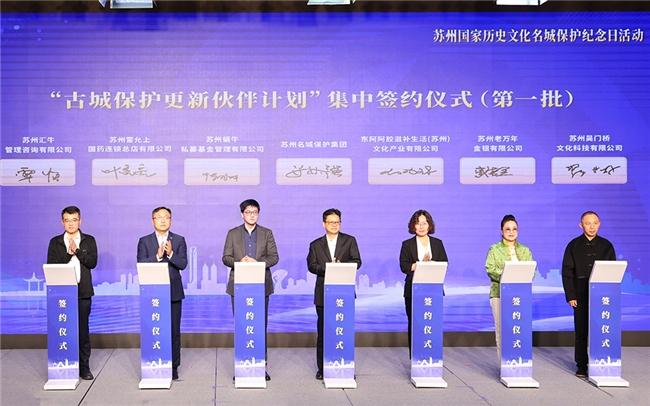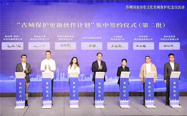 苏州名城保护集团与苏州雷允上国药连锁总店有限公司、苏州汇牛管理咨询有限公司、苏州蜗牛私募基金管理有限公司、东阿阿胶滋补生活(苏州)文化产业有限公司、苏州吴门桥文化科技有限公司、苏州老万年金银有限公司等“古城保护更新伙伴”企业代表进行签约,拟对瓣莲巷6号、庙堂巷14号、游马坡巷5号、曹沧洲故居、钮家巷王宅东路、钮家巷陈宅等进行活化利用,打造企业总部、新型文化产业园等。