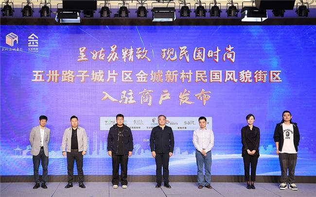 五卅路子城片区金城新村在今天盛装开街。苏州名城保护集团与仙人痣珠宝、Salt.(顺路)西餐轻食餐厅、高登音乐酒吧、悉下清吧、鱼乐茶餐厅、兔柚茶咖空间等金城新村更新改造入驻商户代表,共同为金城新村项目发布入驻商户。