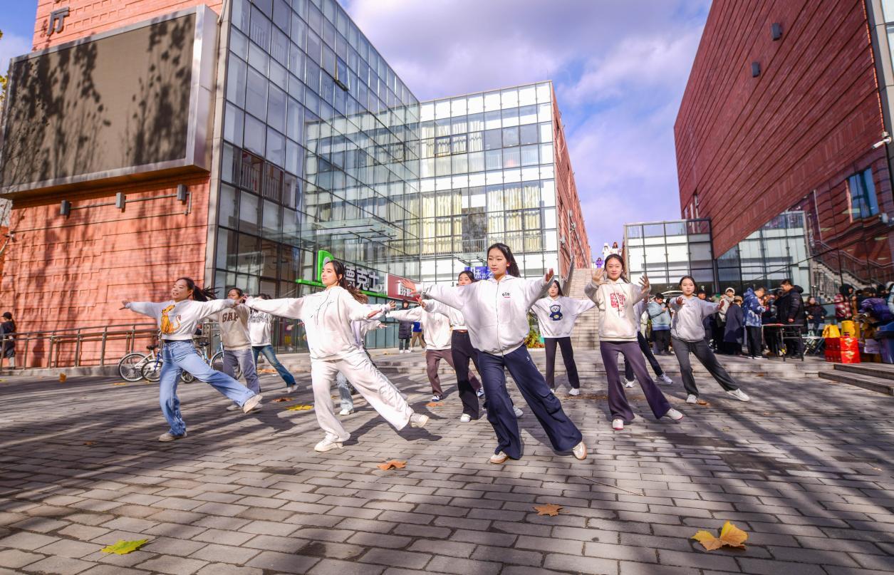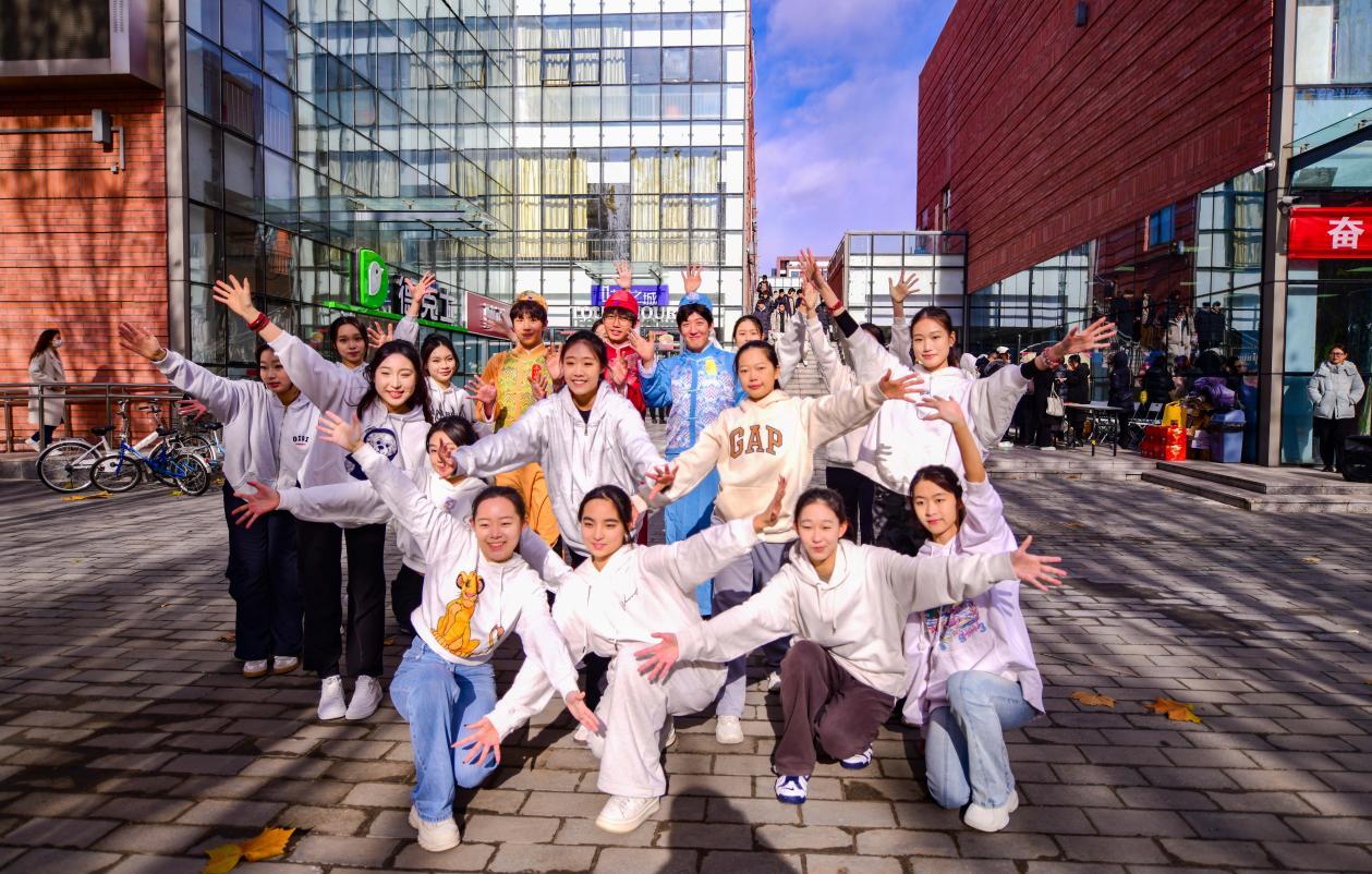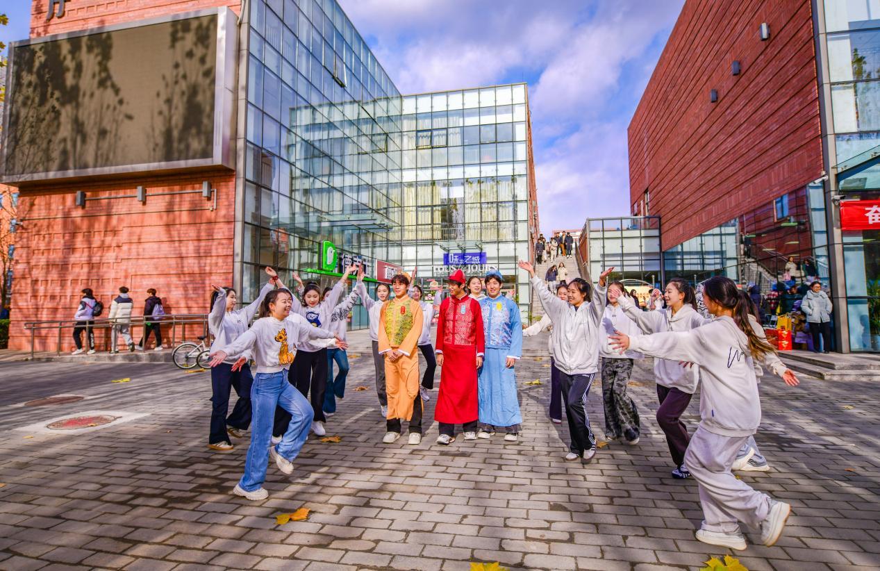 头戴瓜皮帽、身穿长衫、外套马褂……11月26日,老字号王致和卡通形象“王小和”走进北京城市学院校园玩起快闪,吸引大学生们拍照互动、加入其中。